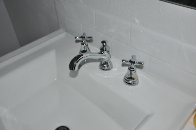 Isn't the tub shiny and pretty? The refinisher said it was about 1/2" thick iron and 1/4" thick porcelain and replacing it would have been close to $1,000 (not to mention the cost of getting Roger to rip it out). Refinishing it was substantially less and I like that we have something original from the 40's.